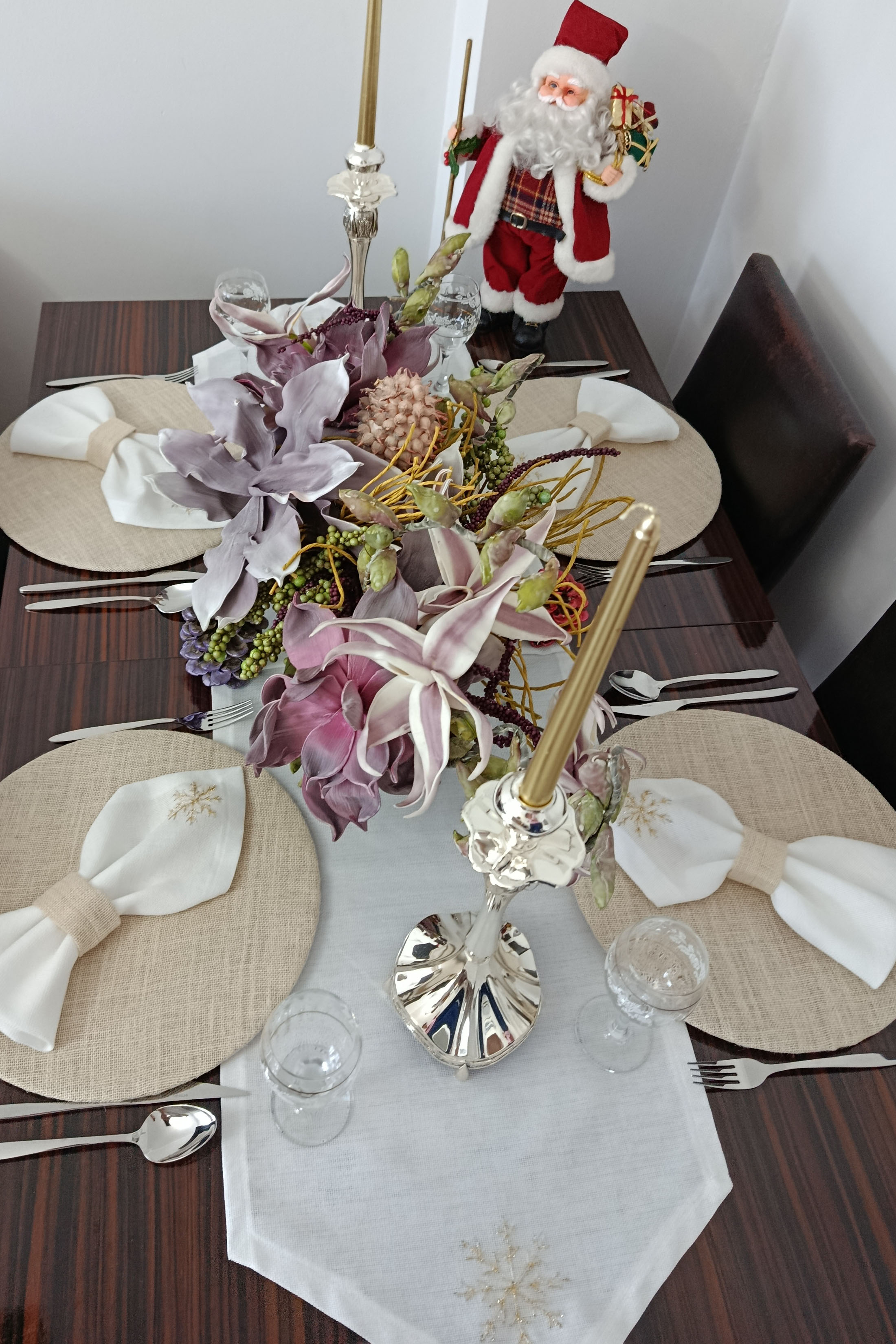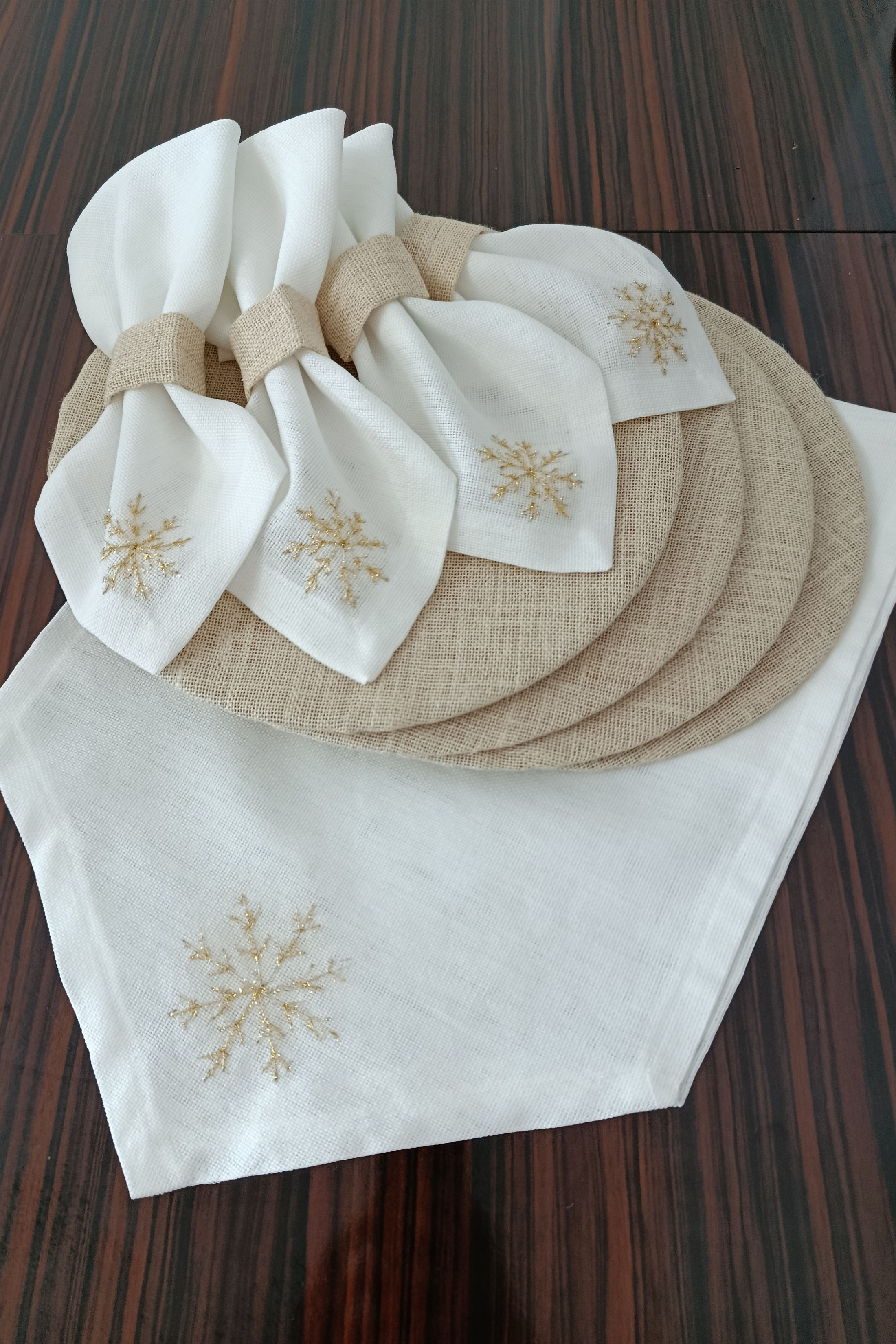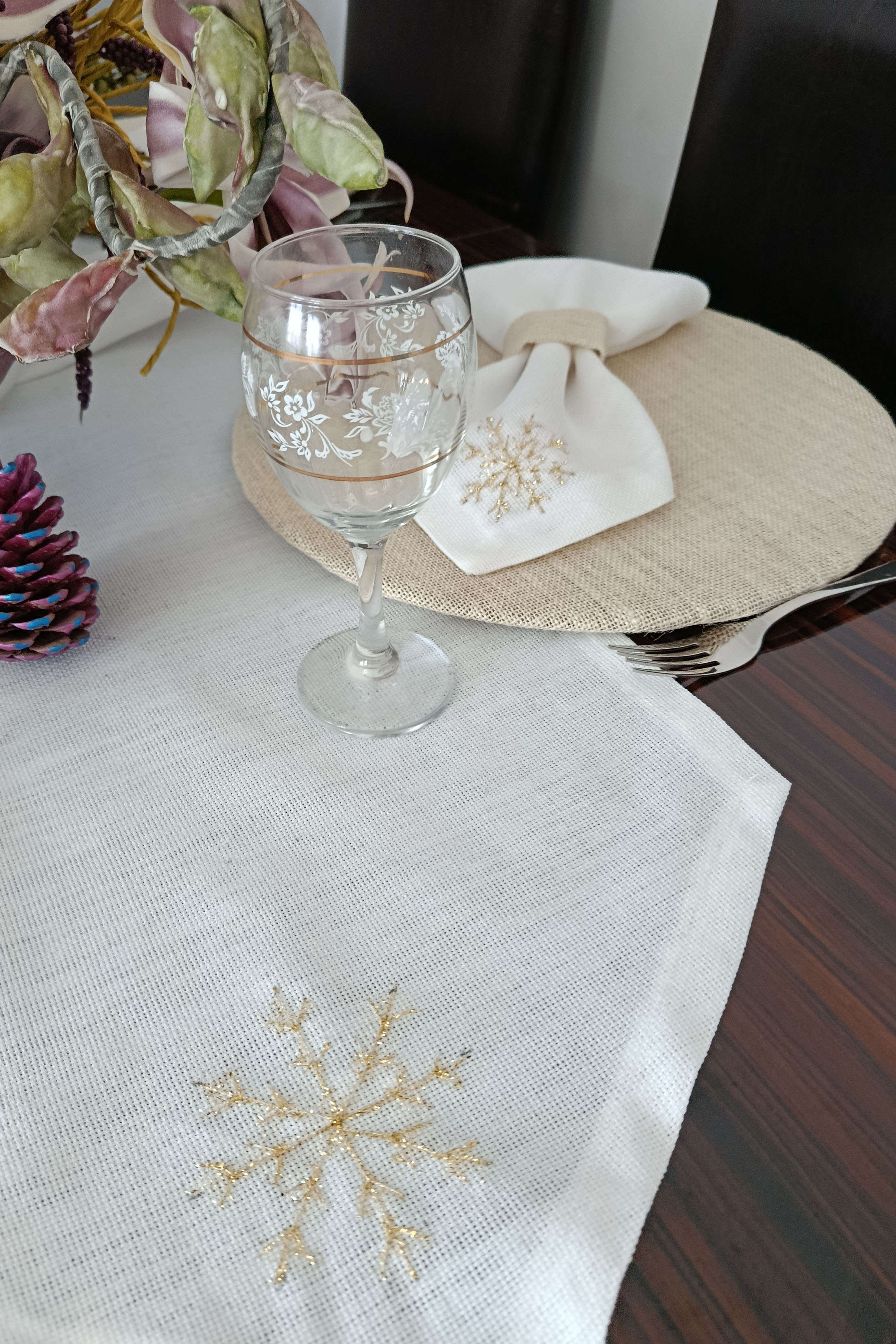 YENİ YIL İÇİN ÖZEL HAZIRLANMIŞ KAR TANESİ İŞLEMELİ RUNNER SET
