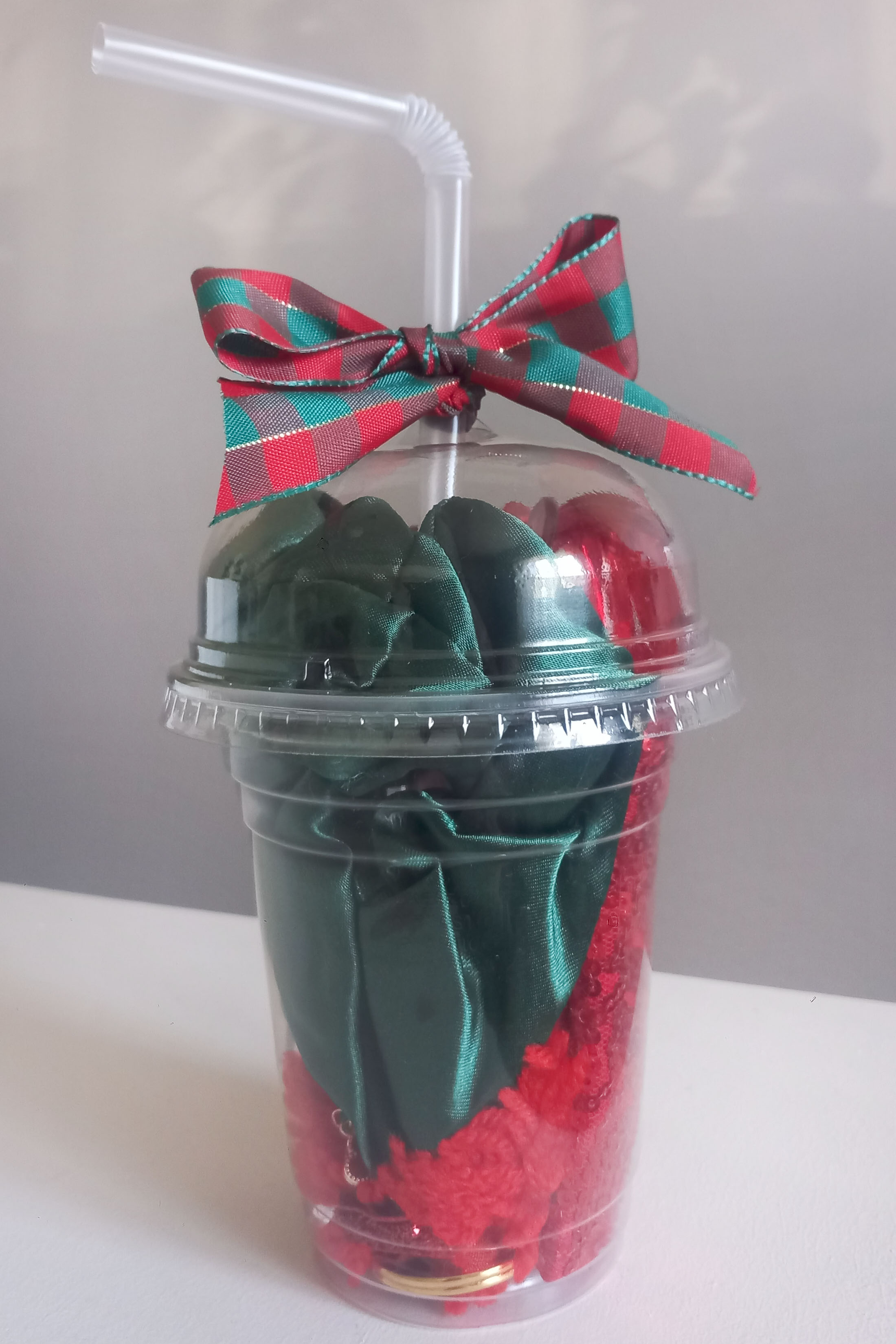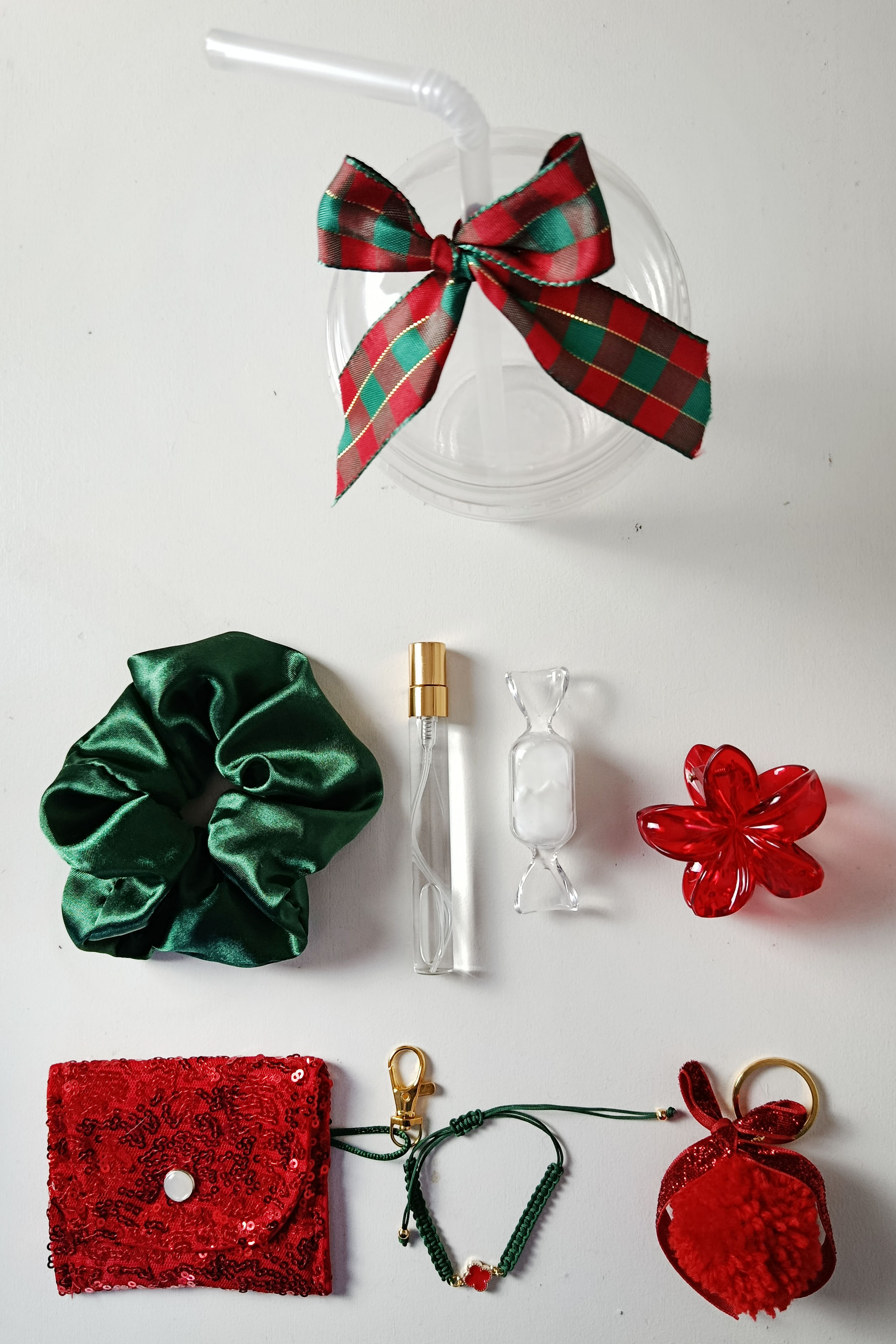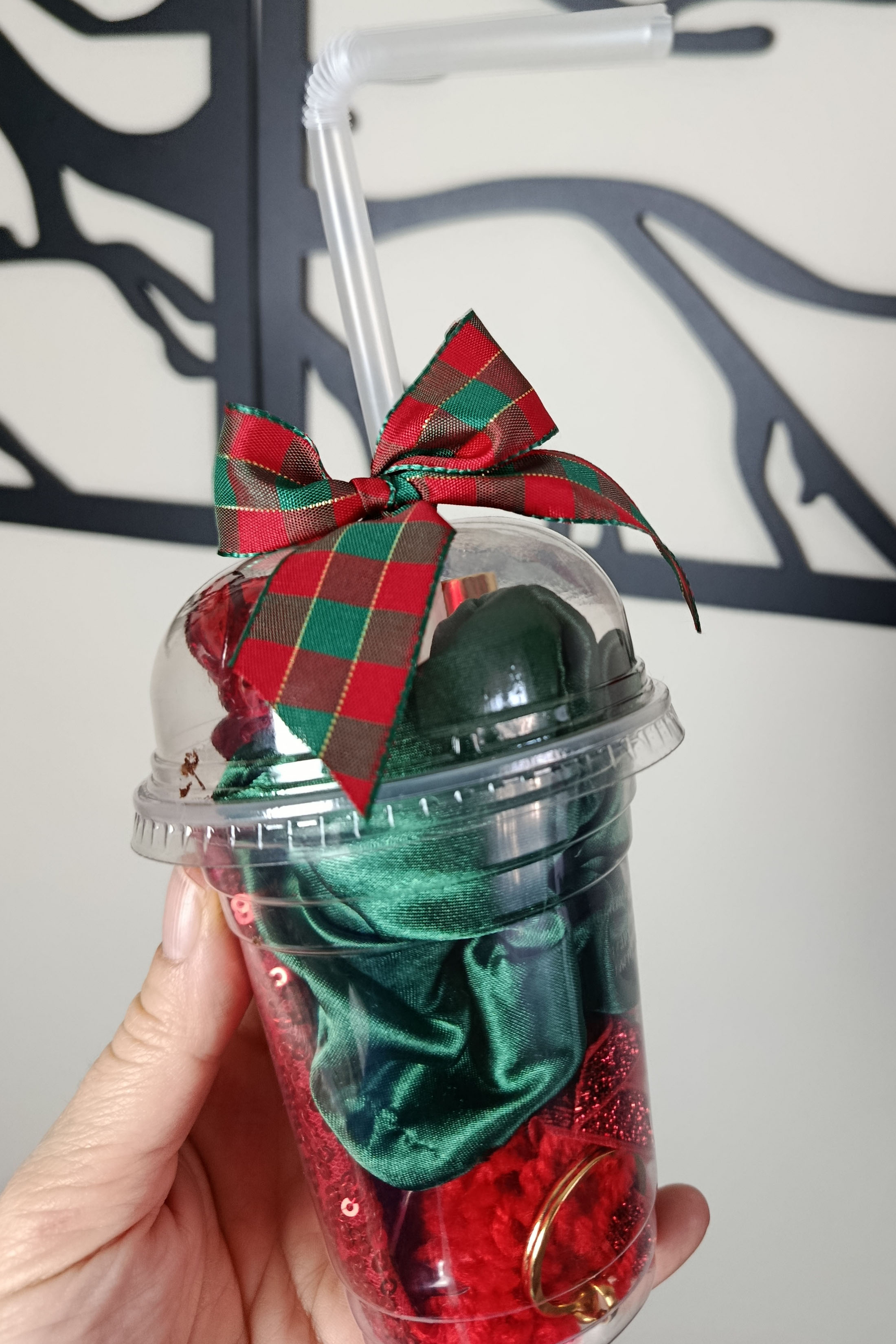 EKOSELİ FİYONKLA SÜSLENMİŞ PİPETİ İLE MİLKSHAKE BARDAĞI İÇİNDE YENİ YIL RUHUNU YANSITAN RENKLERDE
